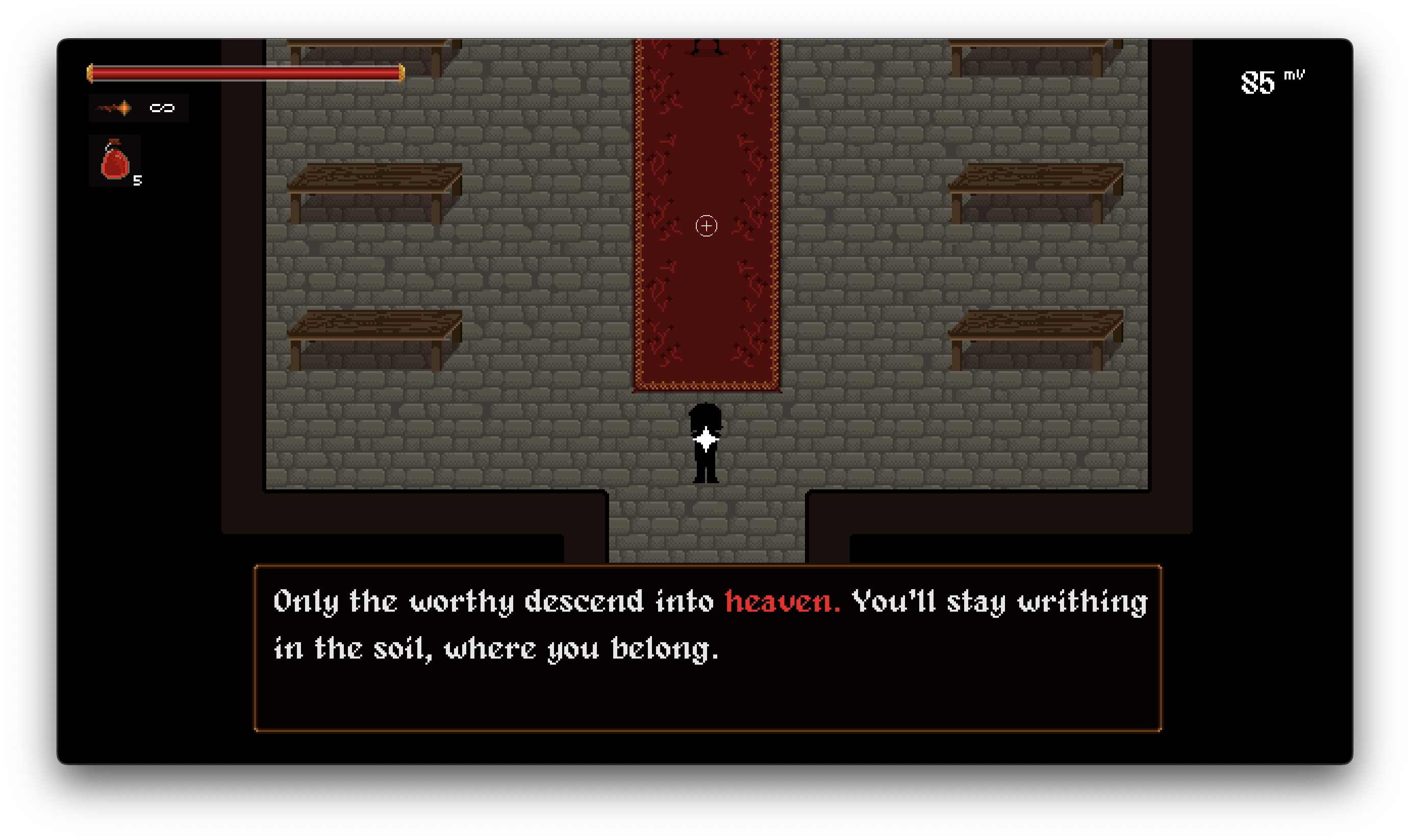 - Challenging and rewarding bullet-hell overworld combat, inspired by games like Enter the Gungeon and DELTARUNE.